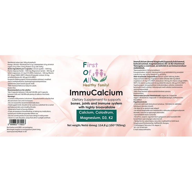 Ha kisgyermekes szülő vagy, akkor tudod, hogy a csontok és az immunrendszer egészsége az egész család számára kulcsfontosságú – az újszülöttektől kezdve egészen az idősebb generációkig. Az ImmuCalcium egy prémium minőségű étrend-kiegészítő, amely a legjobban felszívódó formában támogatja a csontok, az ízületek és az immunrendszer egészségét.